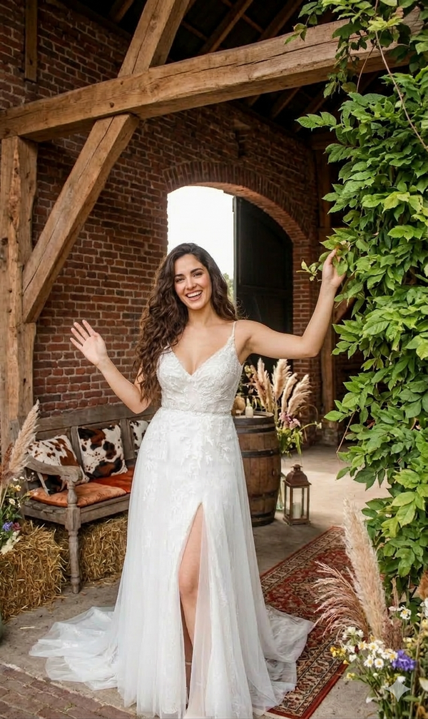 kanten trouwjurk met split