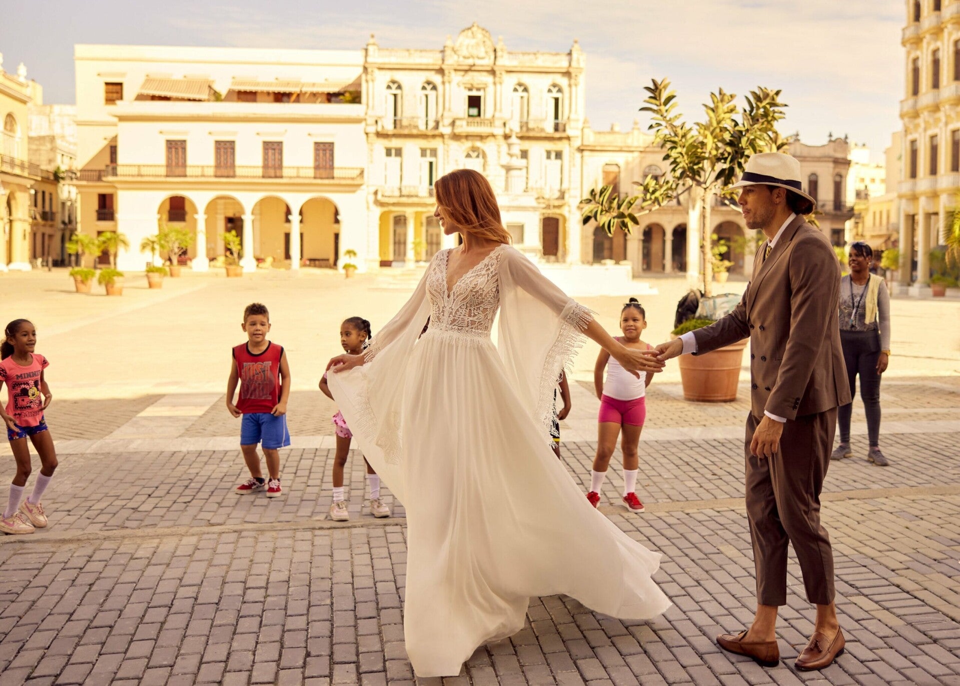 Leo-A is een visie van romantiek in een A-lijn silhoet. Het unieke kenmerk van deze jurk zijn de engelachtige mouwen versierd met speelse franjes, die beweging aan deze look toevoegen. De eenvoudige chiffon rok biedt een tijdloos en elegant contrast met het ingewikkelde lijfje. Deze jurk is ook beschikbaar: