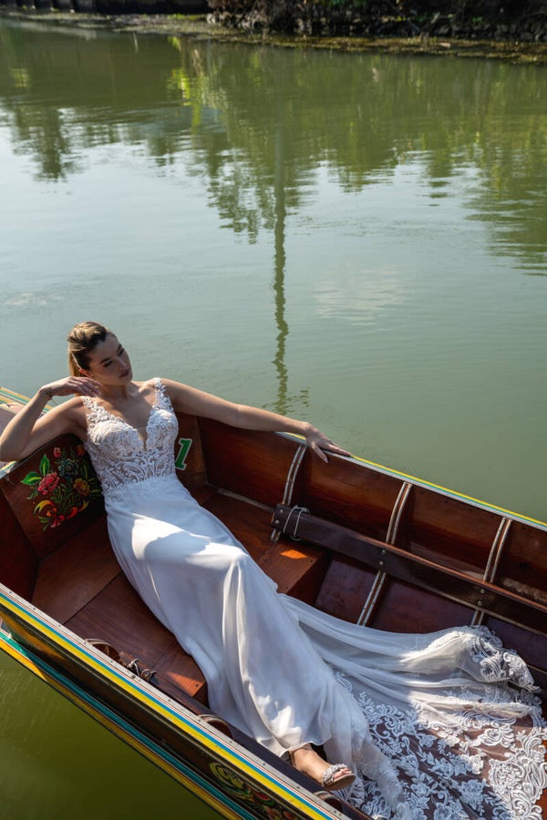 Amelie is een bekend merk dat zich richt op de creatie van elegante en romantische trouwjurken. Het model 20319 van Amelie kenmerken zoals:
