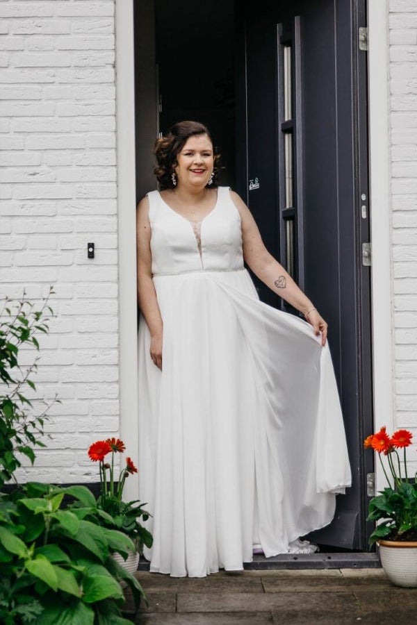 - Stijl: Plus-size bruidsjurk met losvallende rok