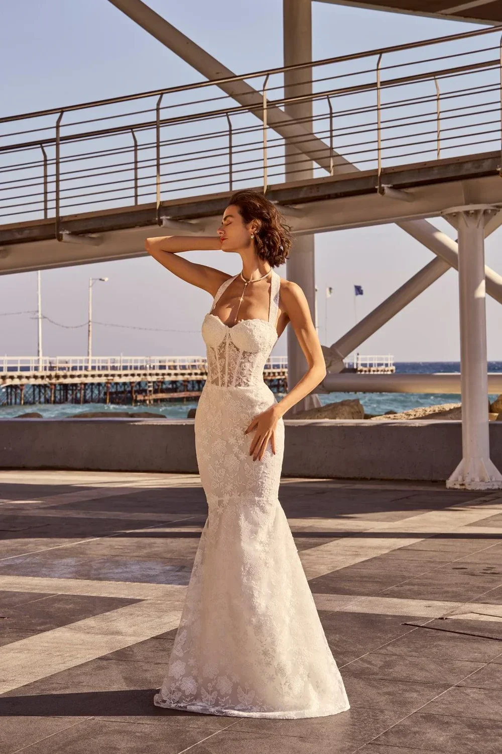 Deze trouwjurk uit de Madeira Collection van Victoria Soprano is een echte showstopper. Emilly combineert dromerige romantiek met moderne sensualiteit. Het lijfje is gedetailleerd met bloemenkant op een nude ondergrond, waardoor een illusie-effect ontstaat. De transparante rug en diepe V-hals zorgen voor een verleidelijk silhouet, terwijl de soepelvallende rok elegant mee beweegt.