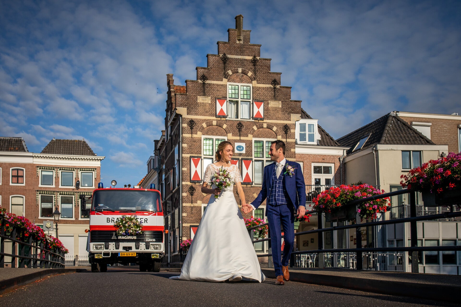Een jurk die rustig oogt, maar wel duidelijk bruids is.
