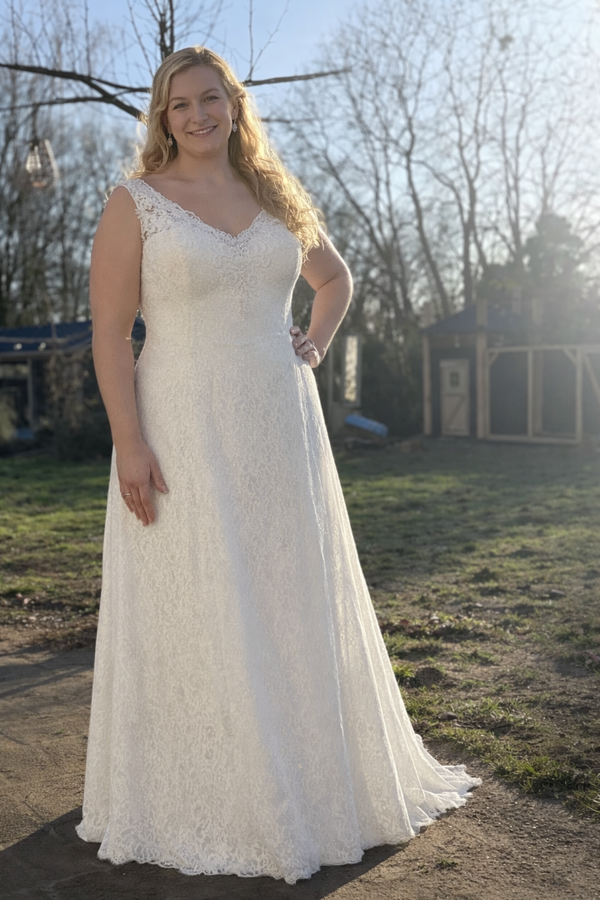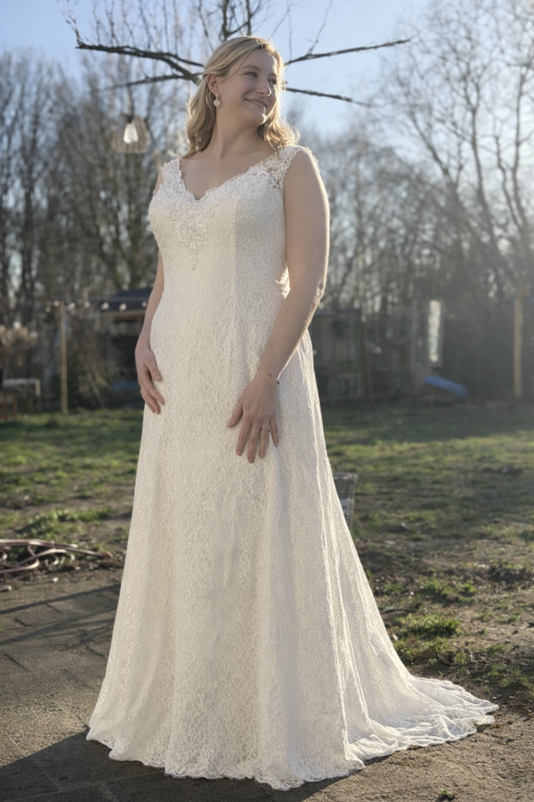 Tweedehands trouwjurk maat 46 – romantische kanten bruidsjurk Code 2025160