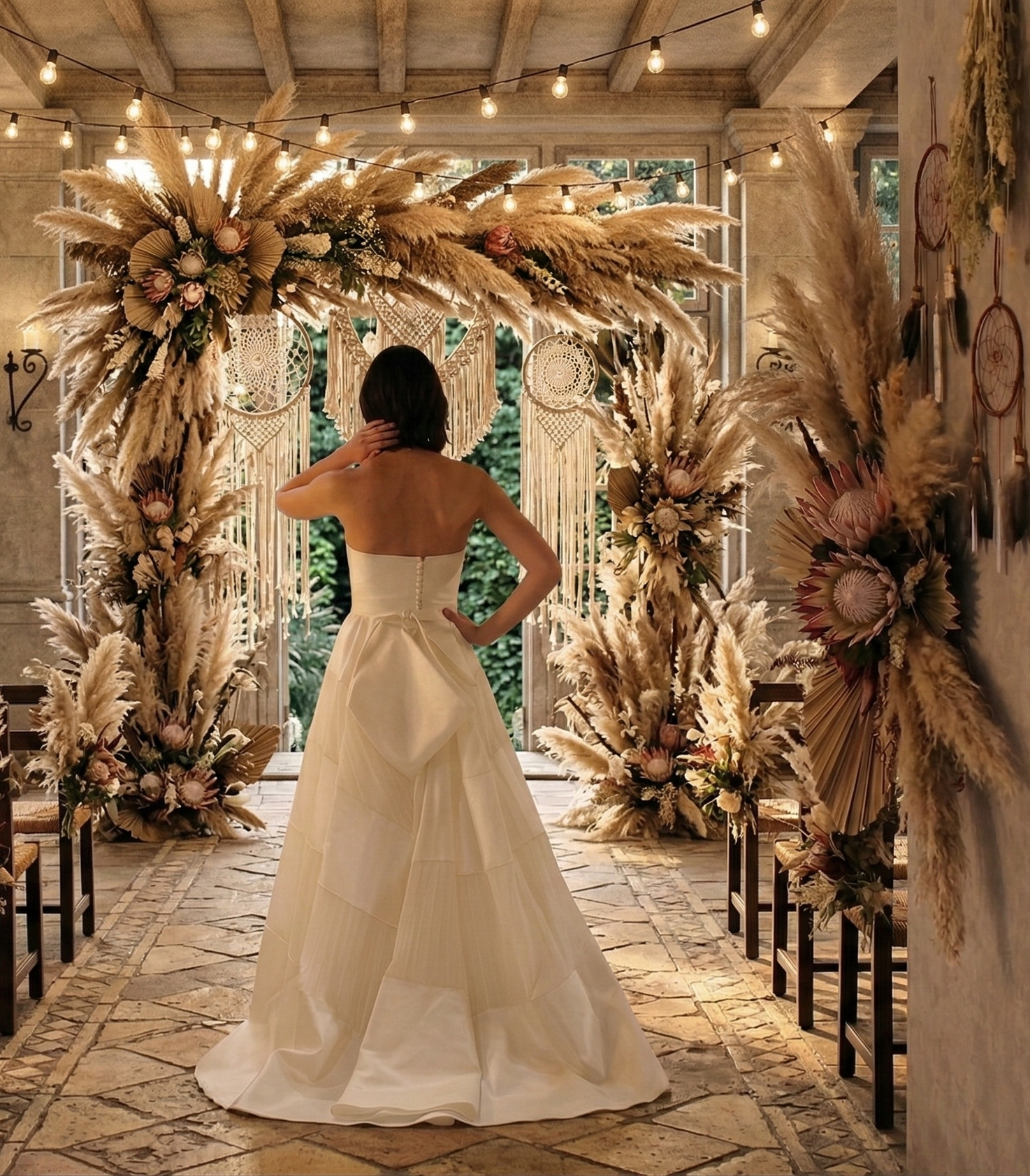Een andere opvallende eigenschap is de aparte flap aan de achterkant van de jurk. Deze unieke toevoeging voegt een vleugje verrassing en stijl toe aan de traditionele achterkant van een bruidsjurk. Het kan een asymmetrische flap zijn die een interessant contrast creëert met de rest van de jurk of een elegante en sierlijke extra laag die beweging en drama toevoegt aan de rok.