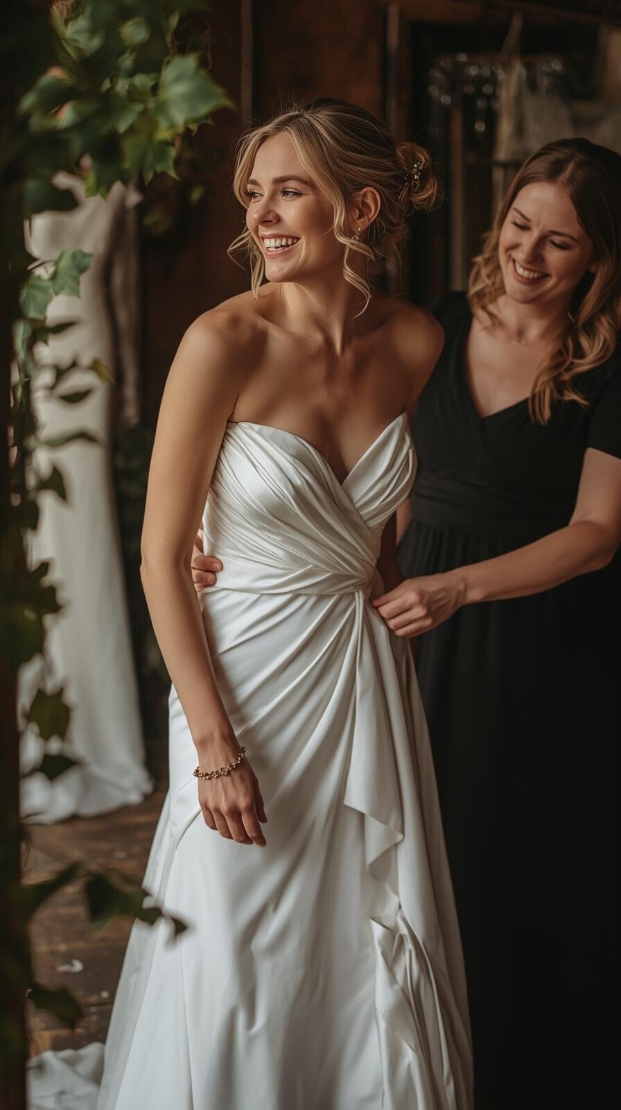 Bij het passen van trouwjurken is het handig om ondergoed te dragen dat goed aansluit.