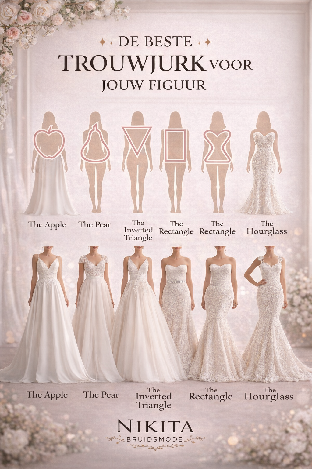 Je hoort vaak termen als A-lijn, zandloper of peerfiguur. In de praktijk zegt dat maar een deel. Een trouwjurk die bij je lichaam past, wordt bepaald door: